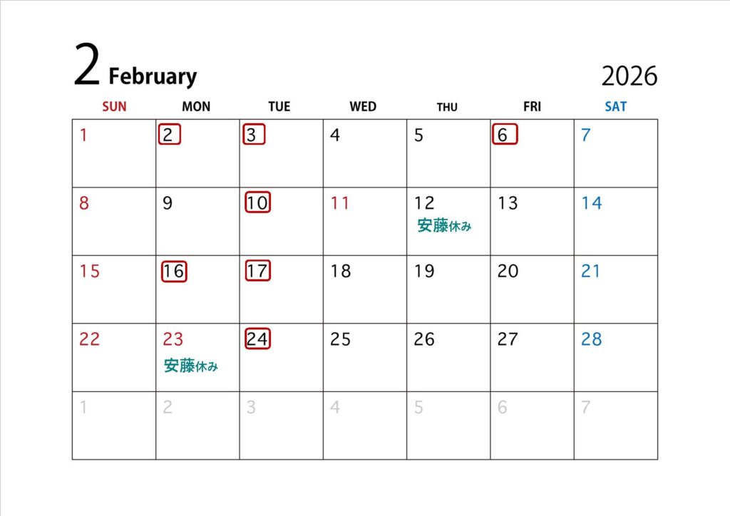 2月のお休み