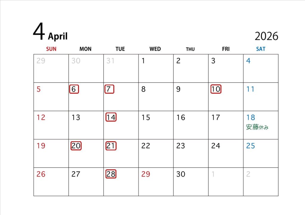4月のお休み